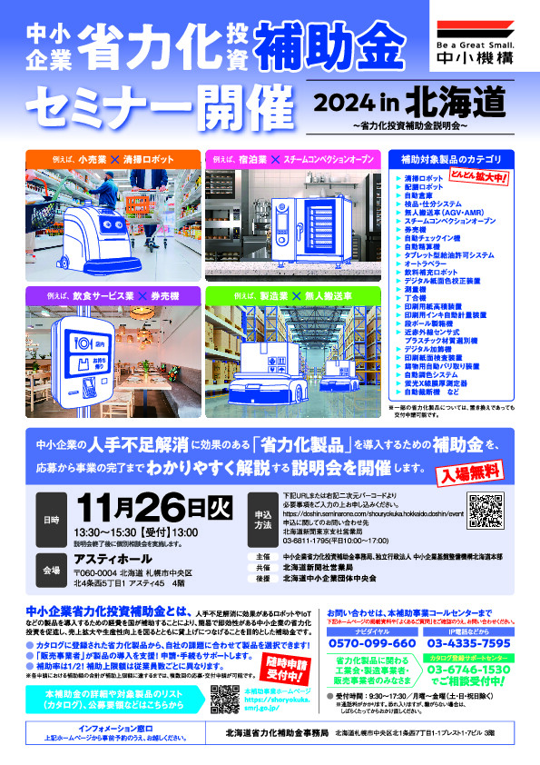 【中小機構】中小企業省力化投資補助金セミナー開催のお知らせ