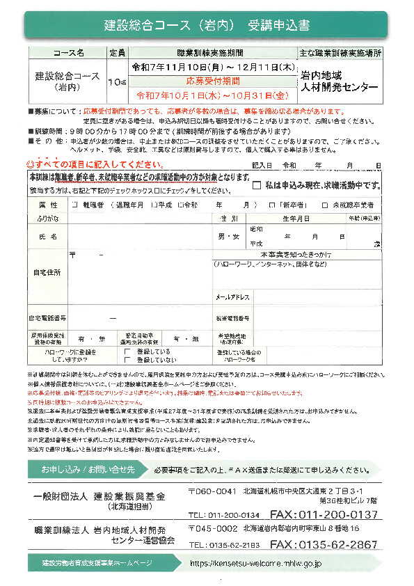 職業訓練法人岩内地域人材開発センター運営協会 TEL 0135-62-2183
