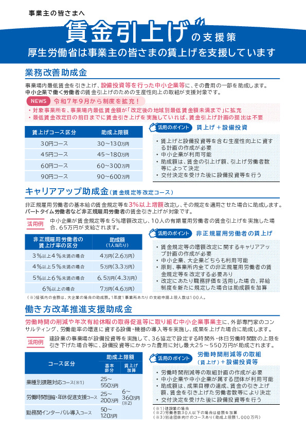「賃上げ」支援助成金パッケージ |厚生労働省