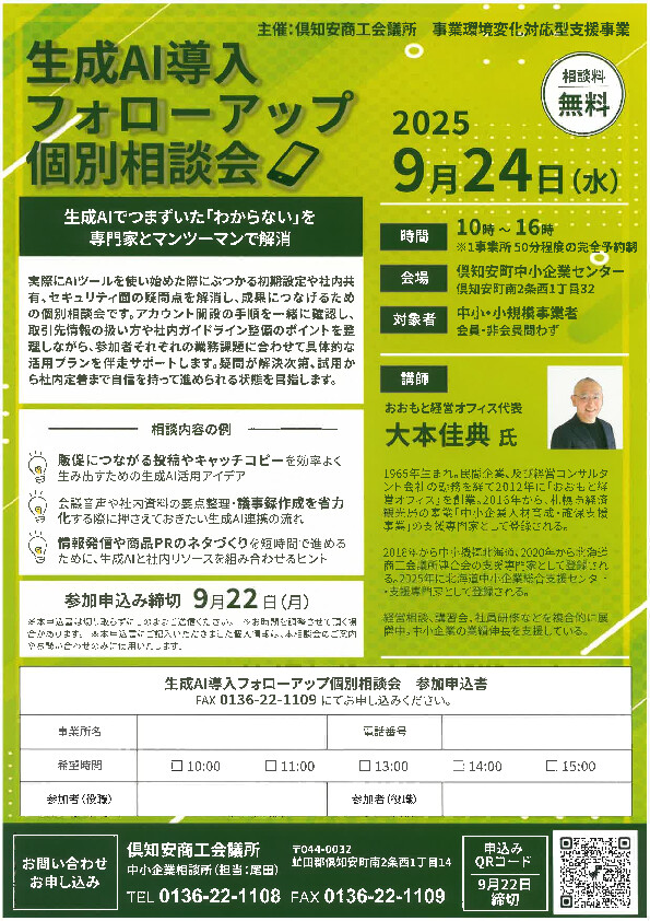生成AI導入フォローアップ個別相談会(事業環境変化対応型支援事業)